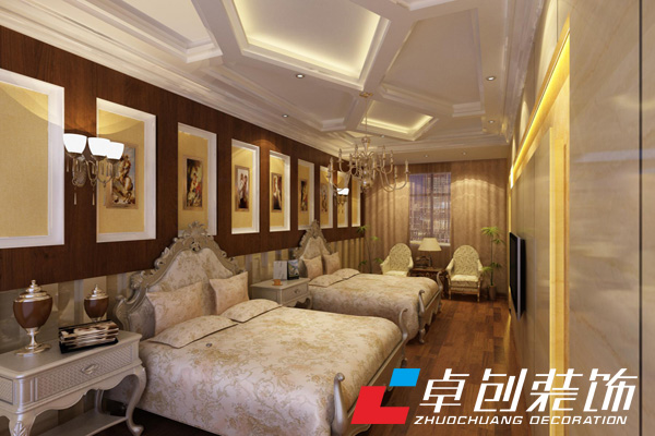 2、貼壁紙:歐式酒店室內(nèi)墻壁面層處理平整后,開(kāi)鋪貼壁紙。在歐式酒店裝修中由于壁紙的種類(lèi)非常多,有幾百種甚至上千種,色彩、花紋非常豐富。壁紙臟了,清潔起來(lái)也很簡(jiǎn)單,新型壁紙都可以用濕布直接擦拭。