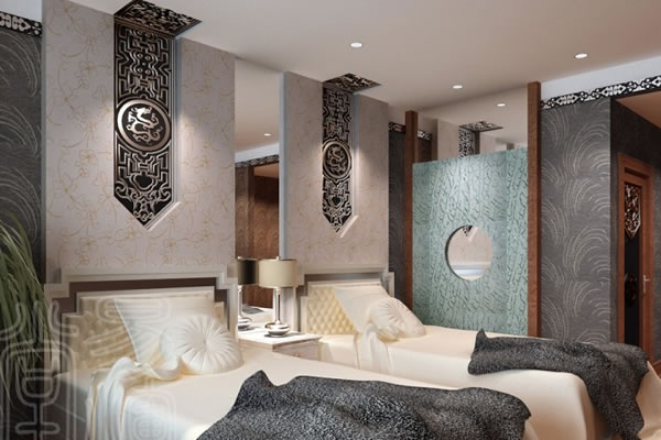 賓館設(shè)計的構(gòu)成形式是一致的。門廳和過廳空間是人流活動最頻繁的區(qū)域,而且作為空間的第一層次,其給人留下的印象深刻與否是至關(guān)的重要。在有些設(shè)計中,門廳和大廳是連帶設(shè)計的,經(jīng)過一個簡單的過渡而達(dá)到下一層次。大廳空間,在賓館設(shè)計上采用大尺度的、古典加現(xiàn)代的處理手法,不管是采用古典主義的表現(xiàn)方式,還是采用現(xiàn)代派的設(shè)計意境,都是為了體現(xiàn)室內(nèi)設(shè)計產(chǎn)生的形態(tài)――高大、壯觀、豪華和富麗堂皇。